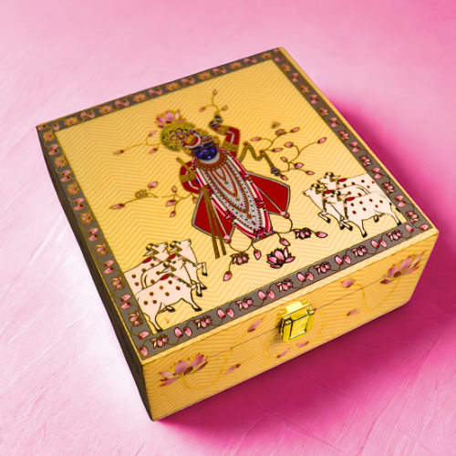 The Packaging: The highlight is the exquisite Artisan Delight Box itself, adorned with a beautiful 'Thakur Ji' design.