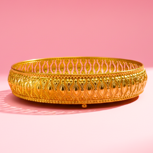 The Packaging: The treats are arranged on a stunningly crafted, royal Gold Filigree Tray. This beautiful tray and the reusable glass jars ensure your gift is remembered and used for years to come.