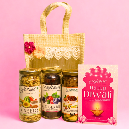 Gift a treasure trove of wellness with our Health Supreme Hamper. This wholesome collection features a delightful trio of Dry Fruit Mix, Seeds Mix and Dried Berries Mix.