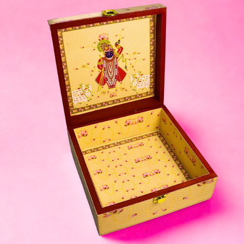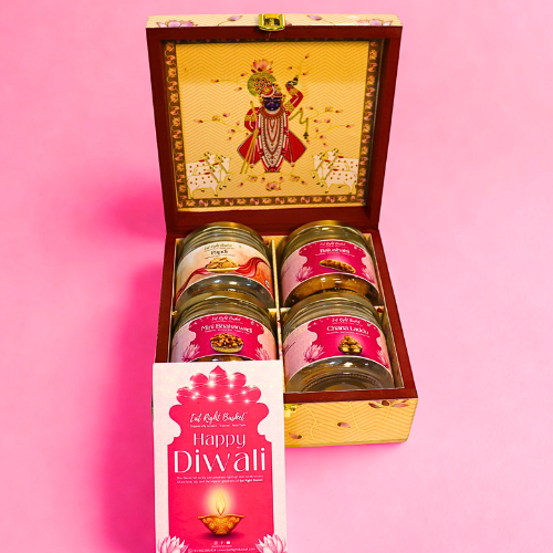 The Packaging: The highlight is the exquisite Artisan Delight Box itself, adorned with a beautiful 'Thakur Ji' design.