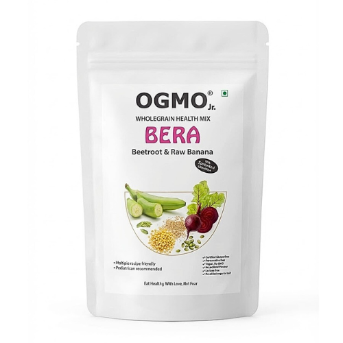 Mark of Quality "BERA" is a colorful blend of Sprouted Little Millet and Beetroot, enriched with Raw Banana and Pumpkin Seeds. The sprouting process enhances nutrient absorption, while beetroot adds natural color and antioxidants. Finely ground with roasted bengal gram and a hint of cardamom, it offers a delicious, smooth texture.