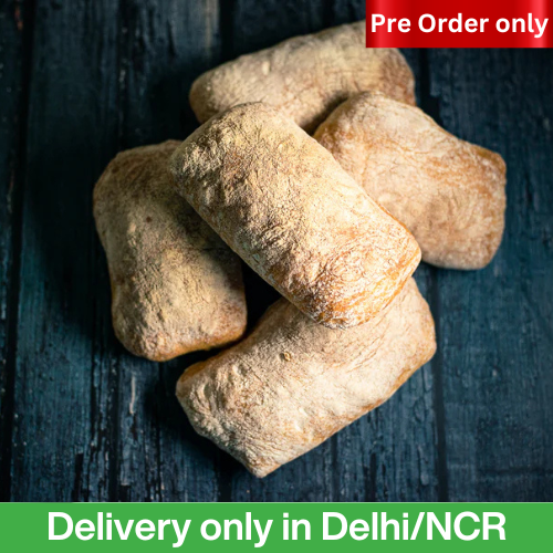 Rustic European-style ciabatta rolls with a beautifully crunchy exterior and a creamy, open, airy crumb. Light, chewy, and naturally flavourful, perfectly baked for gourmet sandwiches and café-style meals.