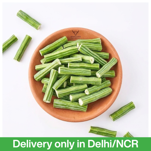 Drumstick Pods or Sehjan ki Phali are a native to South Asia, especially India. It is highly medicinal and finds mention in Ayurchikitsa. Drumstick is also known as horseradish tree or drumstick tree (in English), Subhanjana (in Sanskrit), Haritashaaka or Akshiva (in Ayurveda) and Sainjna or Saguna (in Hindi).