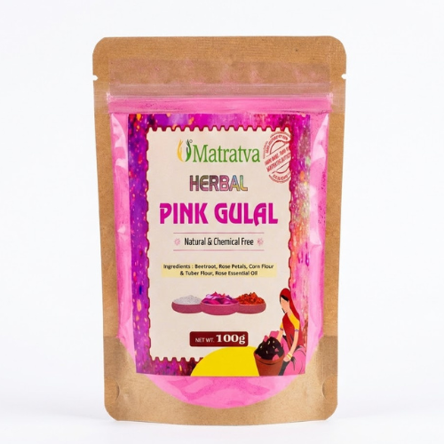 Play Holi with absolute peace of mind with Matratva Herbal Pink Gulal. Created exclusively from real roots and flowers, this gulal represents the ultimate mark of purity. Handmade by mothers using authentic, farm-fresh produce, it is incredibly gentle on sensitive skin and features an uplifting, natural rosy aroma that elevates your festive celebrations.