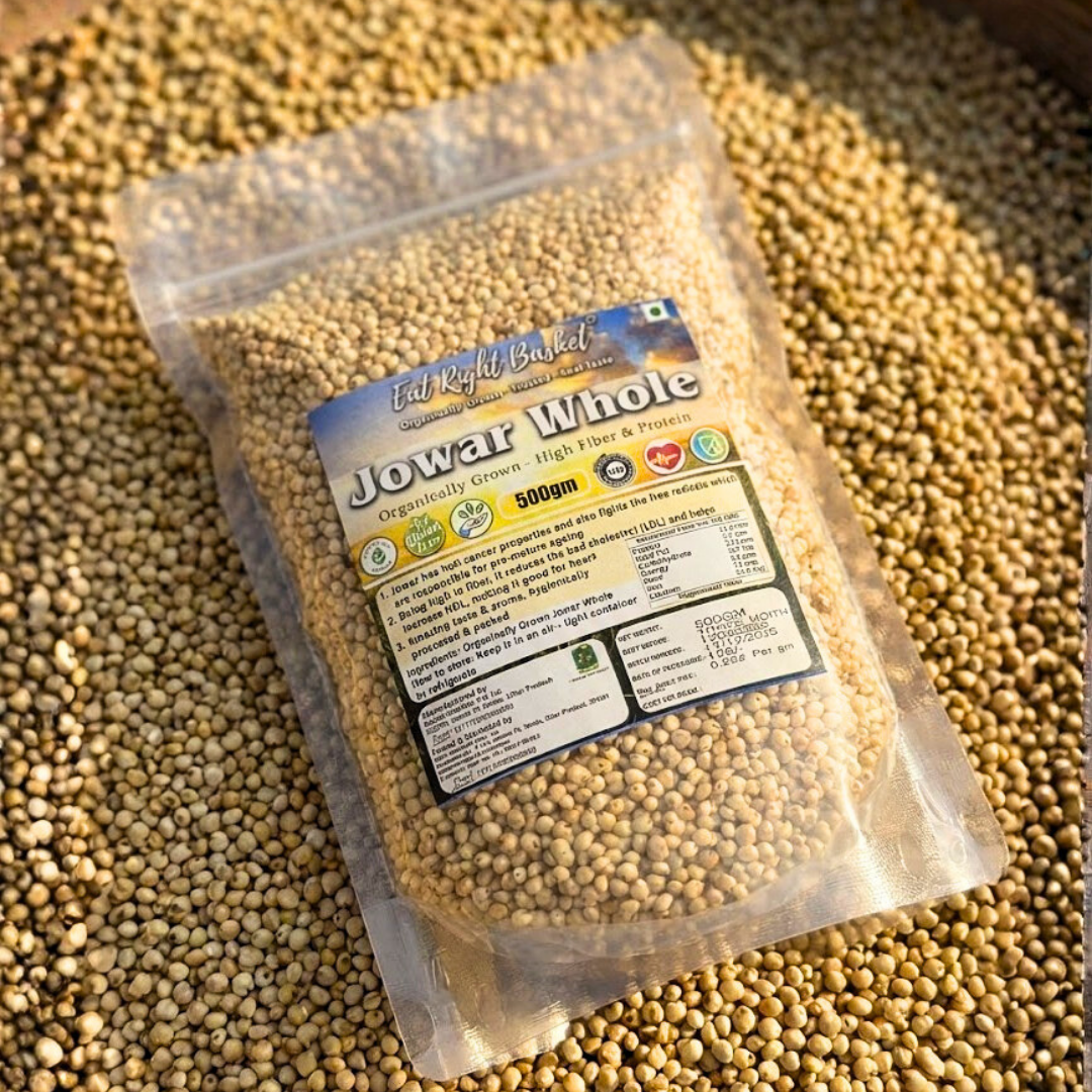 Mark of Purity Our Unpolished Jowar Sabut is a product of traditional Indian farming practices, grown without the use of synthetic fertilizers, urea, pesticides, or growth hormones. Cultivated by farmers who use natural solutions like vermicompost and herbal pest repellents, this grain brings you purity you can trust.