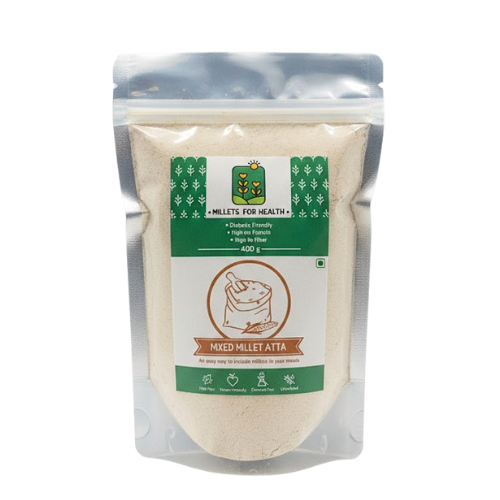 Mixed Millet Atta is packed with dietary fibre, plant-based protein, essential minerals, and slow-digesting carbohydrates. It supports steady energy, helps manage blood sugar, improves digestion, and boosts overall wellness. Millets are naturally gluten-free (except wheat in this blend), rich in iron, magnesium, and antioxidants, making them ideal for heart health, diabetes management, weight balance, and gut health.