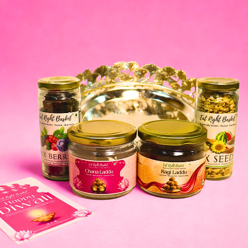 Nutritious Delight Hamper - Desi Ghee Ragi Laddu, Desi Ghee Chana Atta Laddu, Mix Berries & Mix Seeds