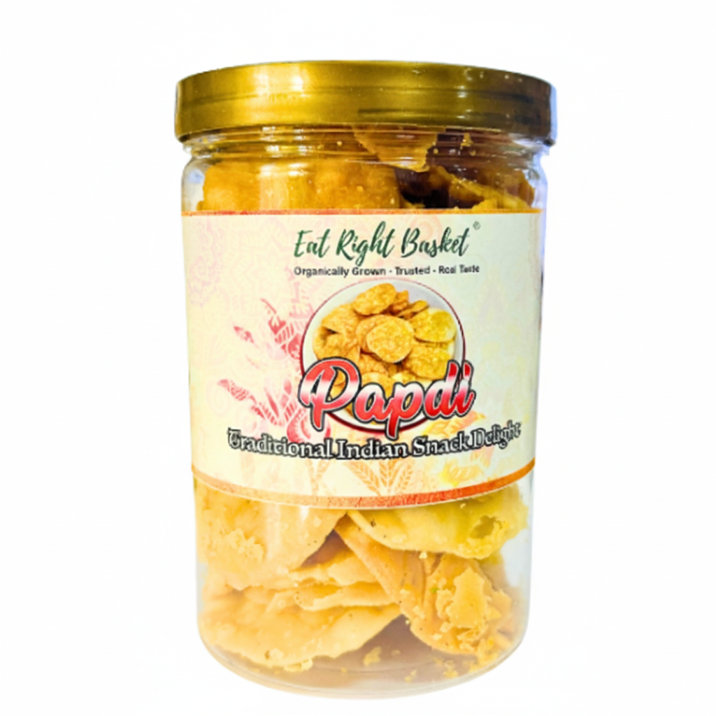 Made with the finest organic ingredients, our papdi offers a delightful crunch in every bite. We use organic Maida flour, groundnut oil, and Himalayan pink salt to create these crispy treats. Perfect for snacking on their own or adding a flavorful touch to your favorite dishes.
